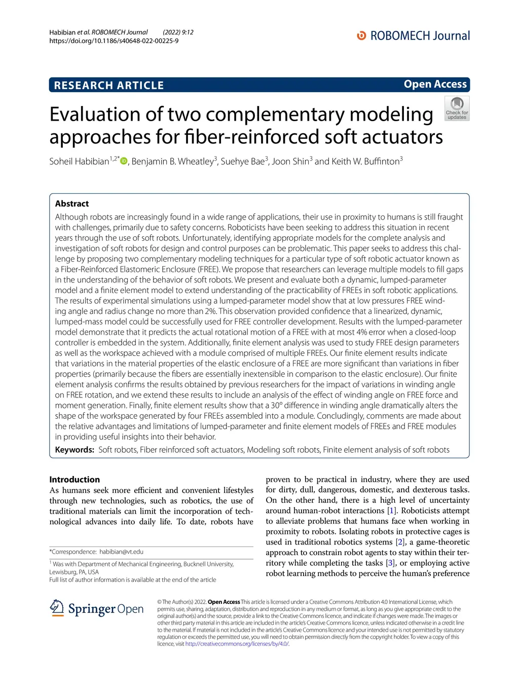 Roboticists have been seeking to address this situation in recent years through the use of soft robots. Unfortunately, identifying appropriate models for the complete analysis and investigation of soft robots for design and control purposes can be problematic. This paper seeks to address this challenge by proposing two complementary modeling techniques for a particular type of soft robotic actuator known as a Fiber-Reinforced Elastomeric Enclosure (FREE). We propose that researchers can leverage multiple models to fill gaps in the understanding of the behavior of soft robots. We present and evaluate both a dynamic, lumped-parameter model and a finite element model to extend understanding of the practicability of FREEs in soft robotic applications. The results with the lumped-parameter model demonstrate that it predicts the actual rotational motion of a FREE with at most 4% error when a closed-loop controller is embedded in the system. Additionally, finite element analysis was used to study FREE design parameters as well as the workspace achieved with a module comprised of multiple FREEs. Our finite element results indicate that variations in the material properties of the elastic enclosure of a FREE are more significant than variations in fiber properties. Finally, finite element results show that a 30-degree difference in winding angle dramatically alters the shape of the workspace generated by four FREEs assembled into a module. Concludingly, comments are made about the relative advantages and limitations of lumped-parameter and finite element models of FREEs and FREE modules in providing useful insights into their behavior.