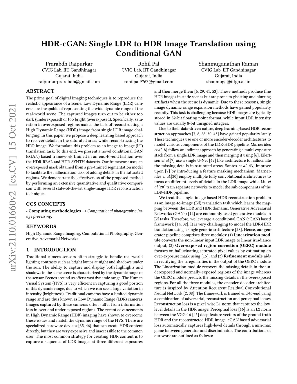 HDR-cGAN: Single LDR to HDR Image Translation using Conditional GAN