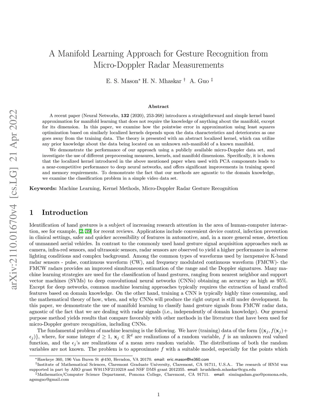 A manifold learning approach for gesture recognition from micro-Doppler