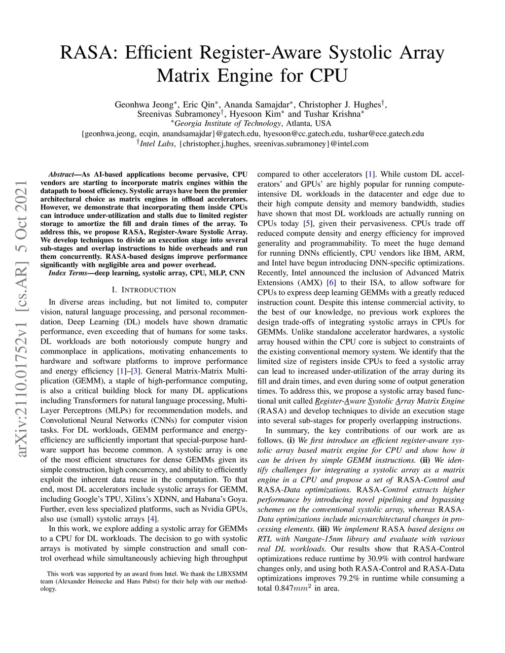 RASA: Efficient Register-Aware Systolic Array Matrix Engine for CPU