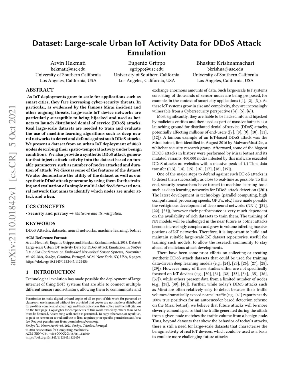Dataset: Large-scale Urban IoT Activity Data for DDoS Attack Emulation