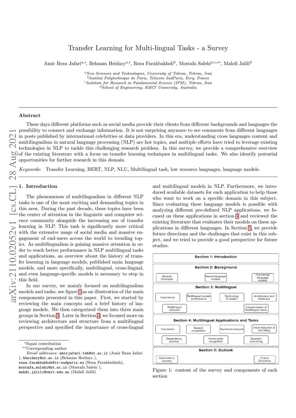 Transfer Learning for Multi-lingual Tasks -- a Survey