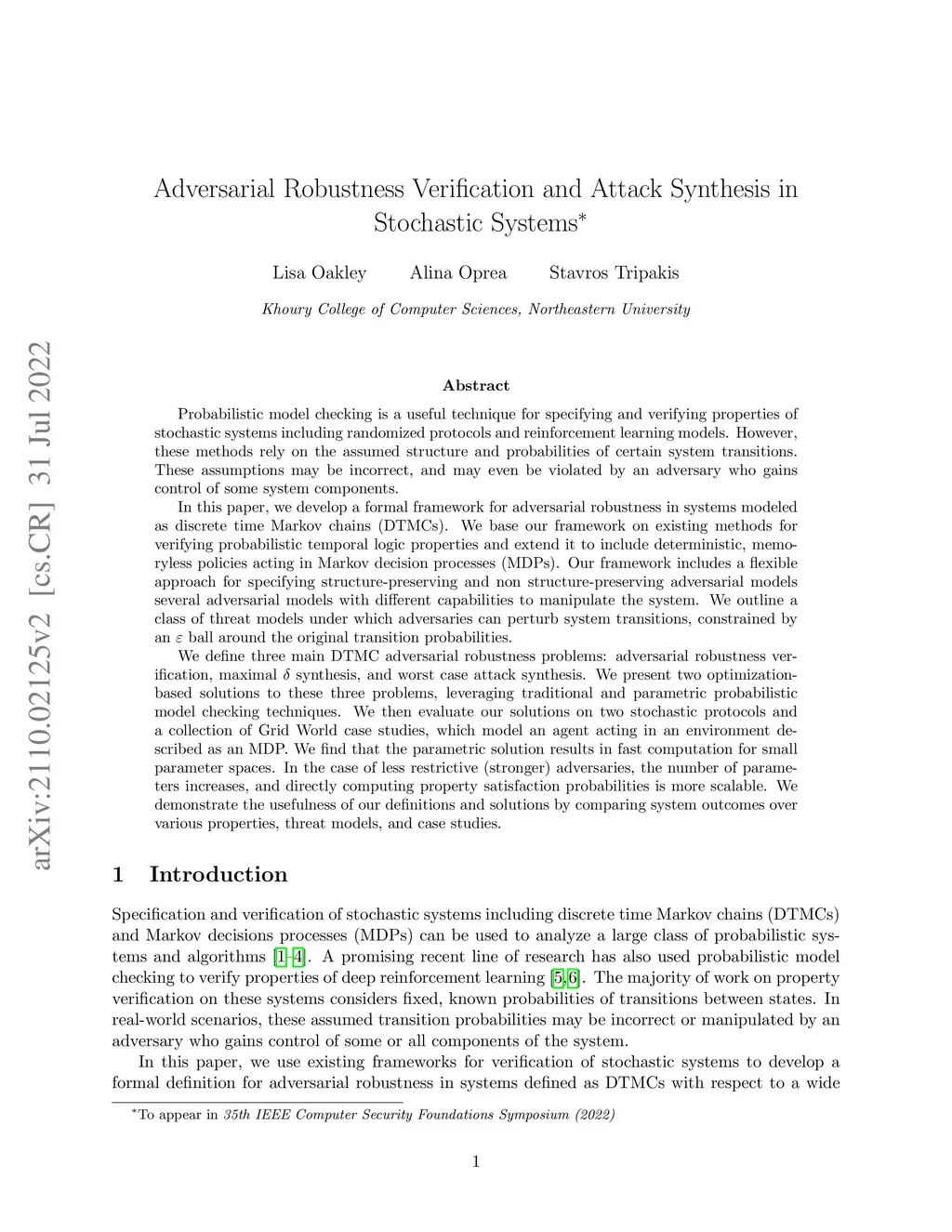 Adversarial Robustness Verification and Attack Synthesis in Stochastic