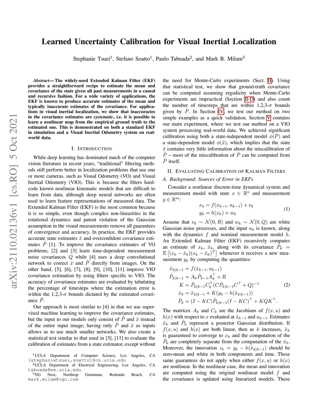 The widely-used Extended Kalman Filter (EKF) provides a straightforward recipe to estimate the mean and covariance of the state given all past measurements in a causal and recursive fashion. For a wide variety of applications, the EKF is known to produce accurate estimates of the mean and typically inaccurate estimates of the covariance. For applications in visual inertial localization, we show that inaccuracies in the covariance estimates are \emph{systematic}, i.e. it is possible to learn a nonlinear map from the empirical ground truth to the estimated one. This is demonstrated on both a standard EKF in simulation and a Visual Inertial Odometry system on real-world data.