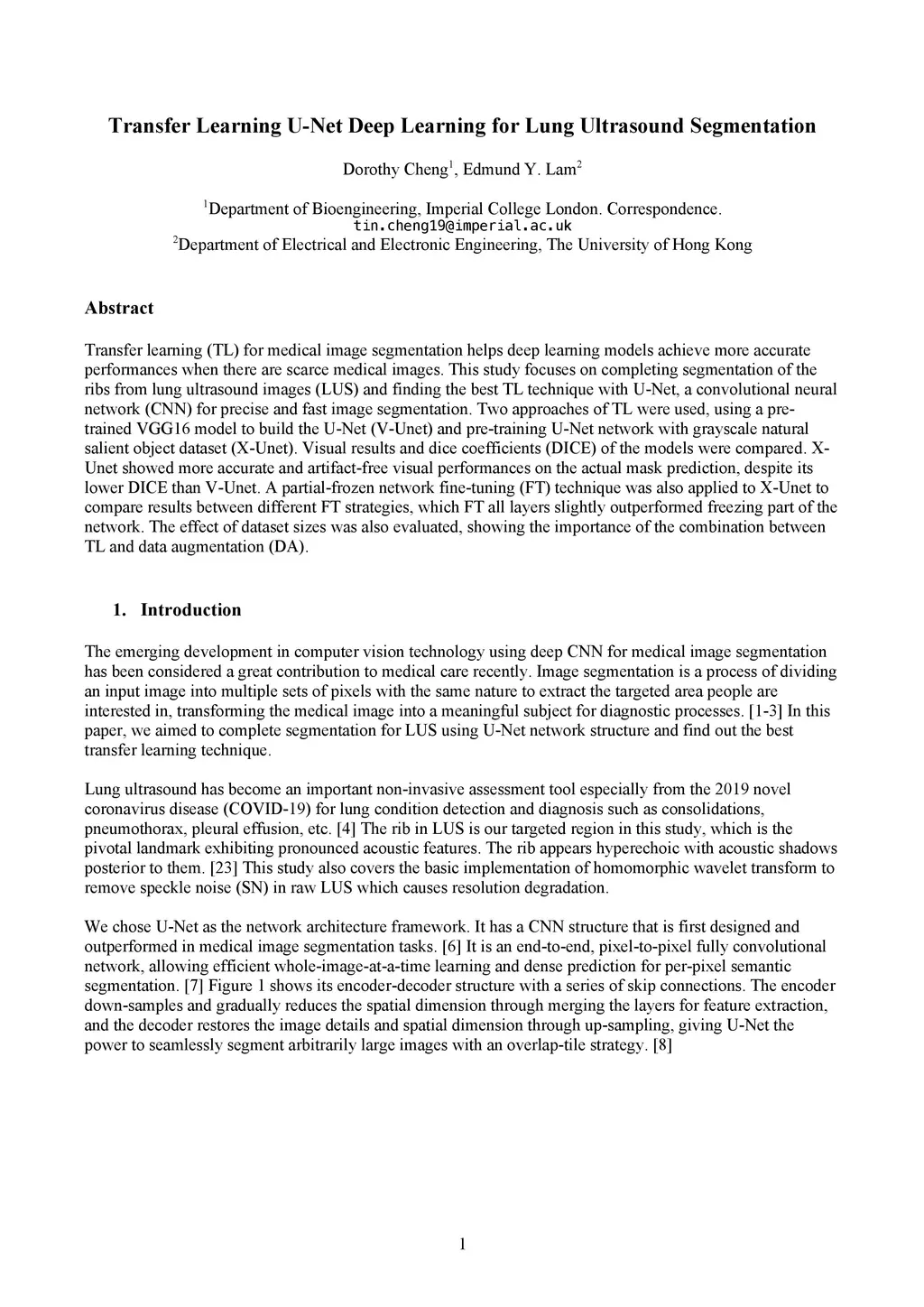 Transfer Learning U-Net Deep Learning for Lung Ultrasound Segmentation