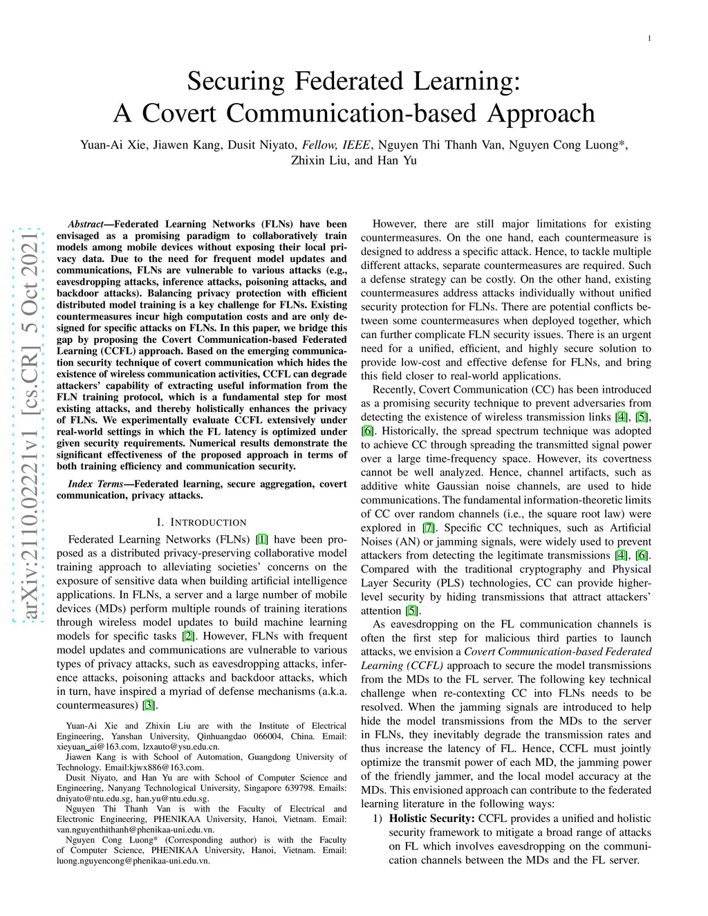 Federated Learning Networks (FLNs) have been envisaged as a promising paradigm to collaboratively train models among mobile devices without exposing their local privacy data. Due to the need for frequent model updates and communications, FLNs are vulnerable to various attacks (e.g., eavesdropping attacks, inference attacks, poisoning attacks, and backdoor attacks). Balancing privacy protection with efficient distributed model training is a key challenge for FLNs. Existing countermeasures incur high computation costs and are only designed for specific attacks on FLNs. In this paper, we bridge this gap by proposing the Covert Communication-based Federated Learning (CCFL) approach. Based on the emerging communication security technique of covert communication which hides the existence of wireless communication activities, CCFL can degrade attackers' capability of extracting useful information from the FLN training protocol, which is a fundamental step for most existing attacks, and thereby holistically enhances the privacy of FLNs. We experimentally evaluate CCFL extensively under real-world settings in which the FL latency is optimized under given security requirements. Numerical results demonstrate the significant effectiveness of the proposed approach in terms of both training efficiency and communication security.
