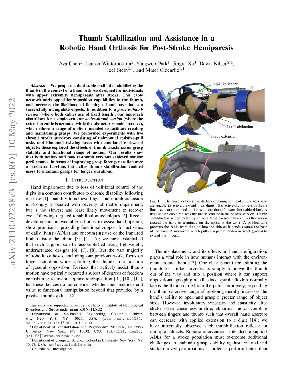 Thumb Stabilization and Assistance in a Robotic Hand Orthosis for