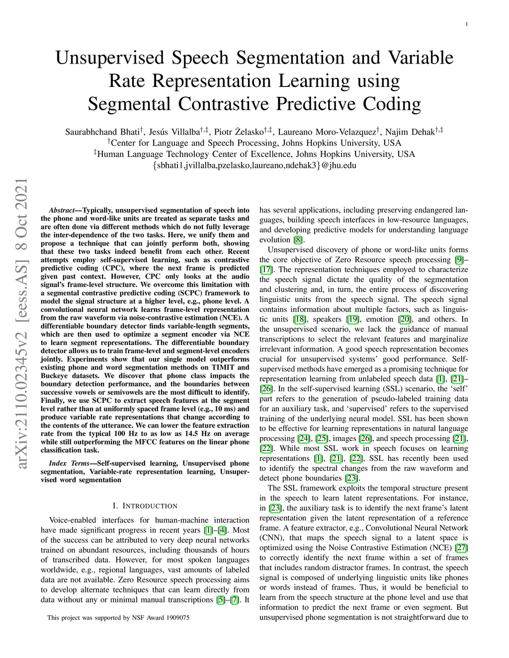 Unsupervised Speech Segmentation and Variable Rate Representation