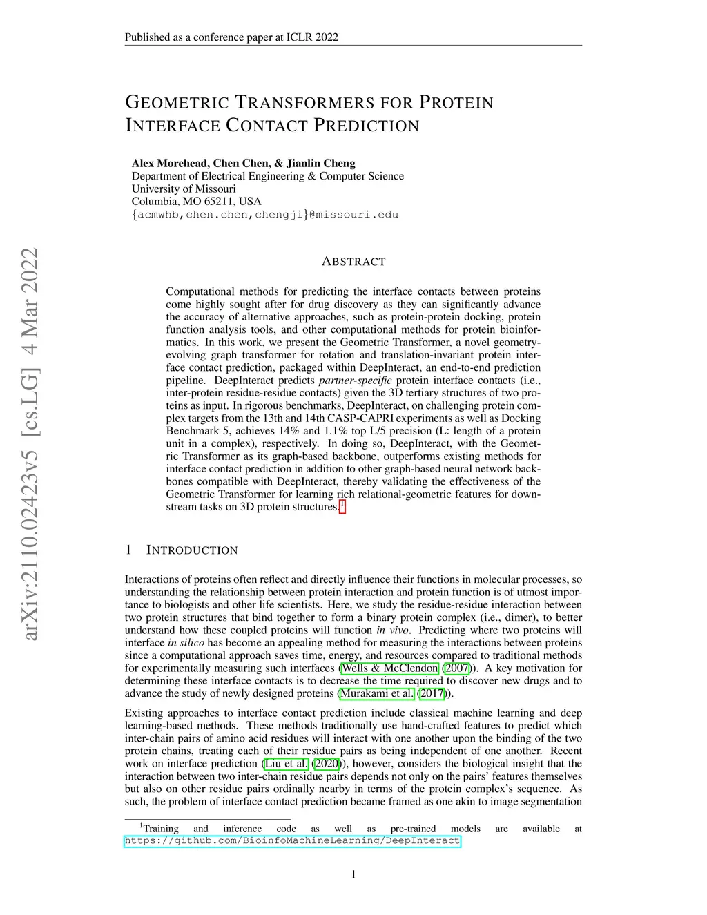 Geometric Transformers for Protein Interface Contact Prediction