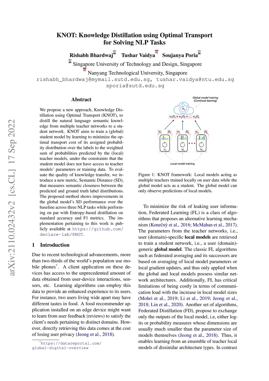 KNOT: Knowledge Distillation using Optimal Transport for Solving NLP