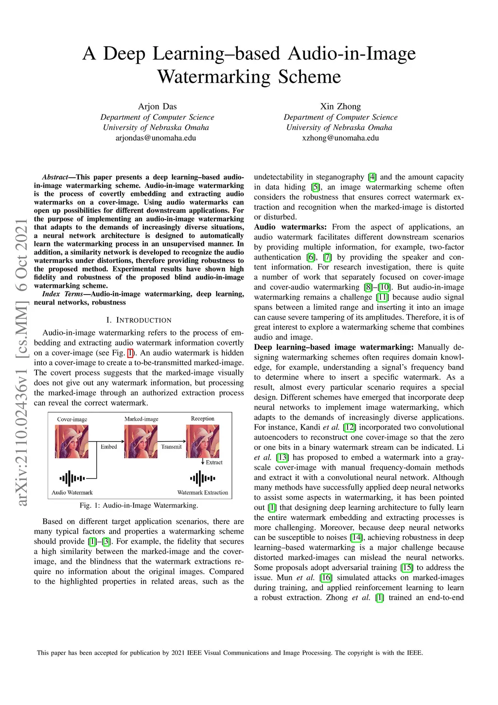 A Deep Learning-based Audio-in-Image Watermarking Scheme
