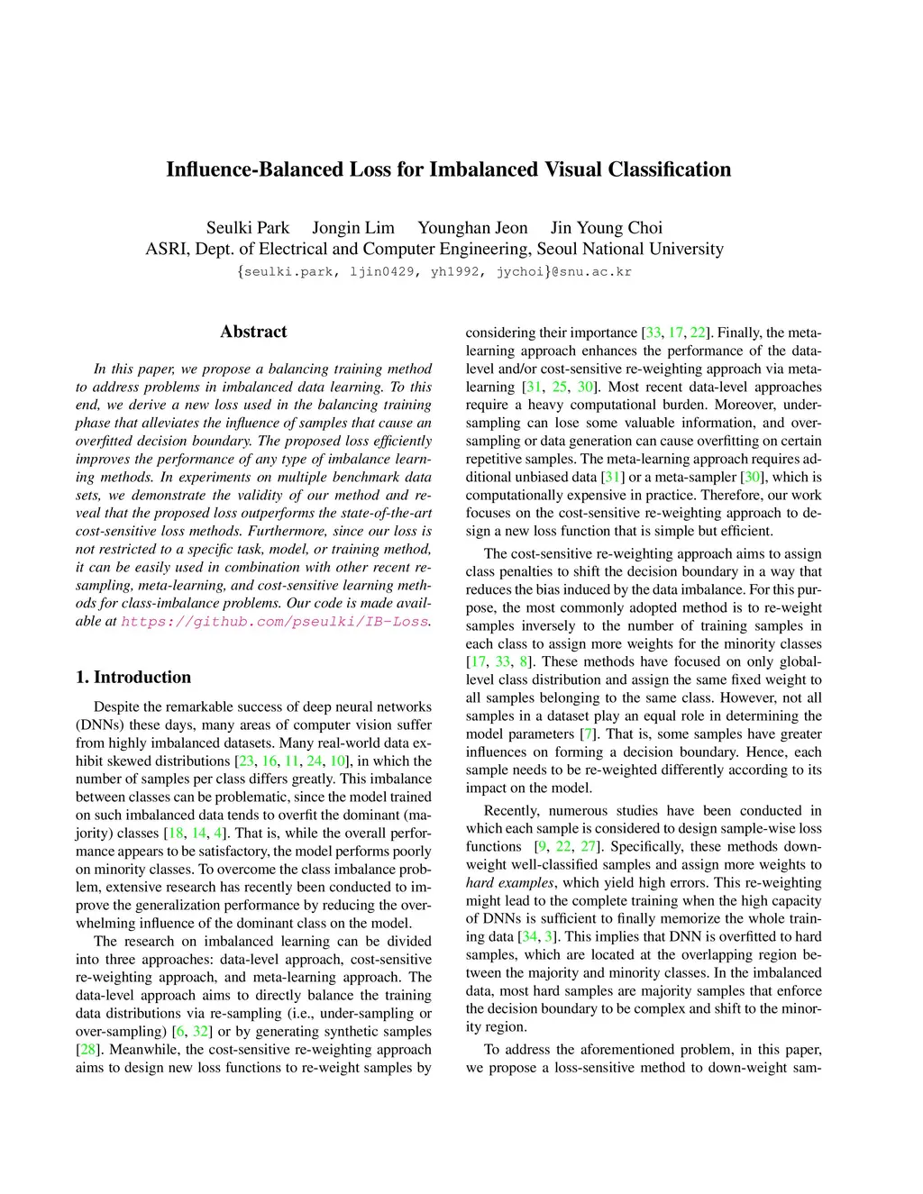 Influence-Balanced Loss for Imbalanced Visual Classification