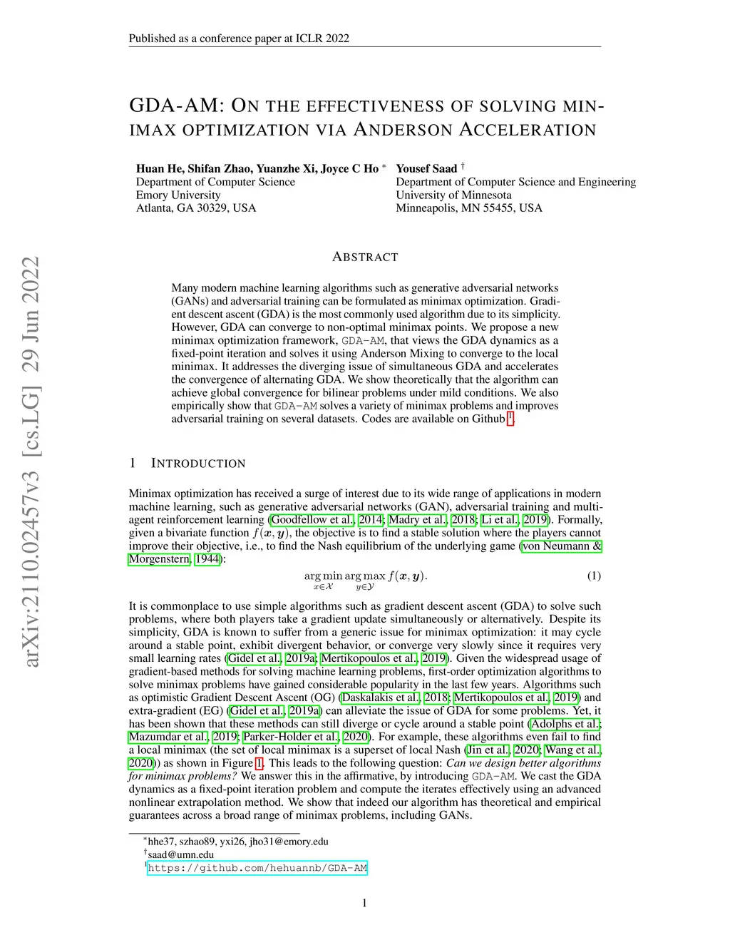 GDA-AM: On the effectiveness of solving minimax optimization via