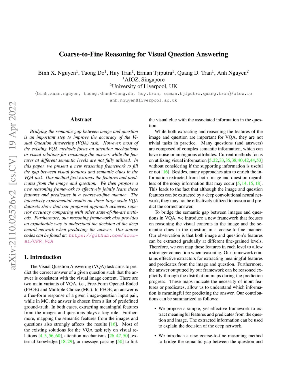 Coarse-to-Fine Reasoning for Visual Question Answering