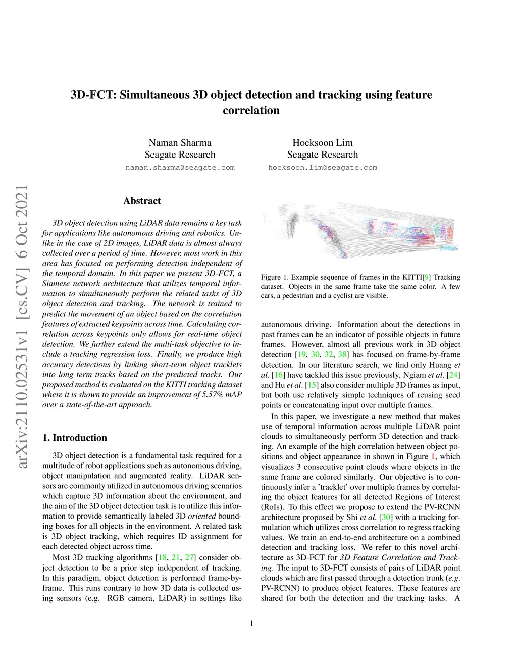 3D-FCT: Simultaneous 3D Object Detection and Tracking Using Feature