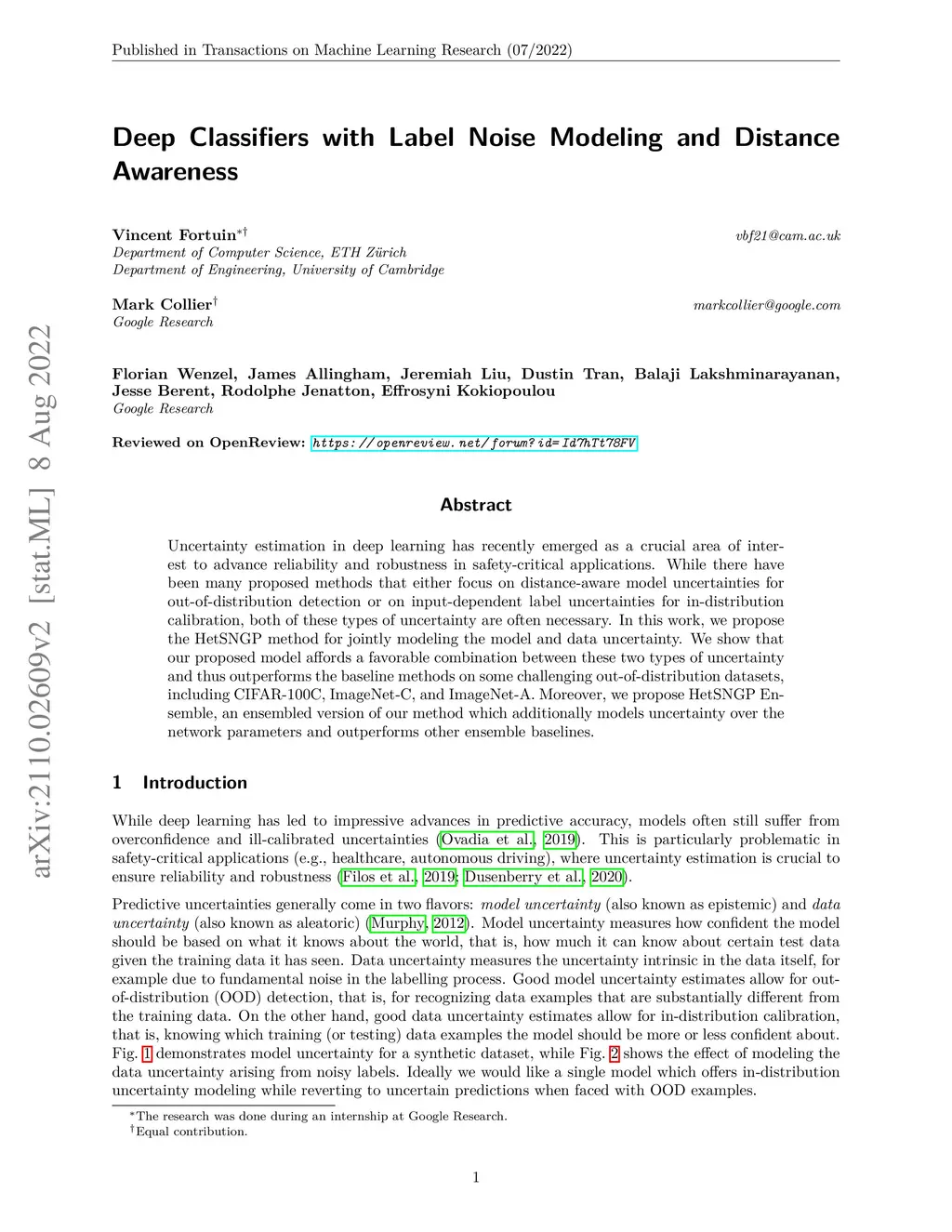 Deep Classifiers with Label Noise Modeling and Distance Awareness