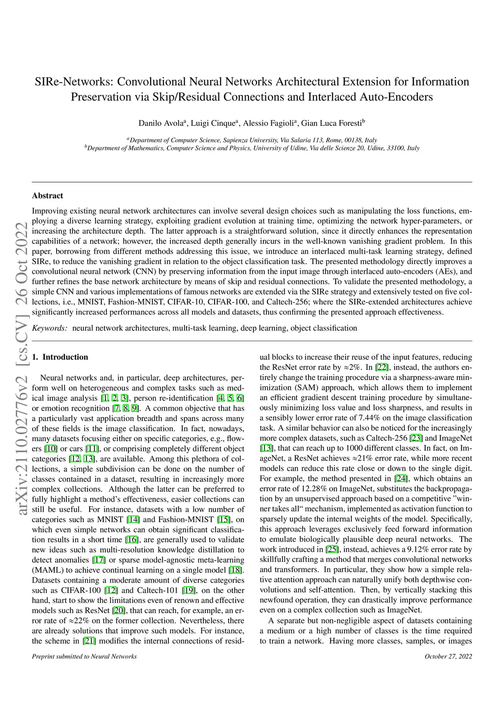 Improving existing neural network architectures can involve several design choices such as manipulating the loss functions, employing a diverse learning strategy, exploiting gradient evolution at training time, optimizing the network hyper-parameters, or increasing the architecture depth. The latter approach is a straightforward solution, since it directly enhances the representation capabilities of a network; however, the increased depth generally incurs in the well-known vanishing gradient problem. In this paper, borrowing from different methods addressing this issue, we introduce an interlaced multi-task learning strategy, defined SIRe, to reduce the vanishing gradient in relation to the object classification task. The presented methodology directly improves a convolutional neural network (CNN) by preserving information from the input image through interlaced auto-encoders (AEs), and further refines the base network architecture by means of skip and residual connections. To validate the presented methodology, a simple CNN and various implementations of famous networks are extended via the SIRe strategy and extensively tested on five collections, i.e., MNIST, Fashion-MNIST, CIFAR-10, CIFAR-100, and Caltech-256; where the SIRe-extended architectures achieve significantly increased performances across all models and datasets, thus confirming the presented approach effectiveness.