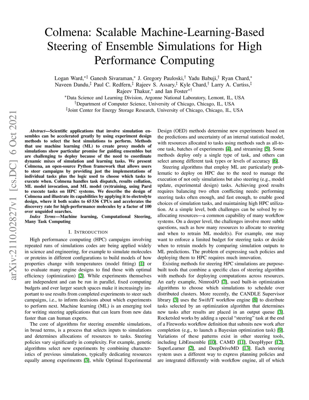 Colmena: Scalable Machine-Learning-Based Steering of Ensemble