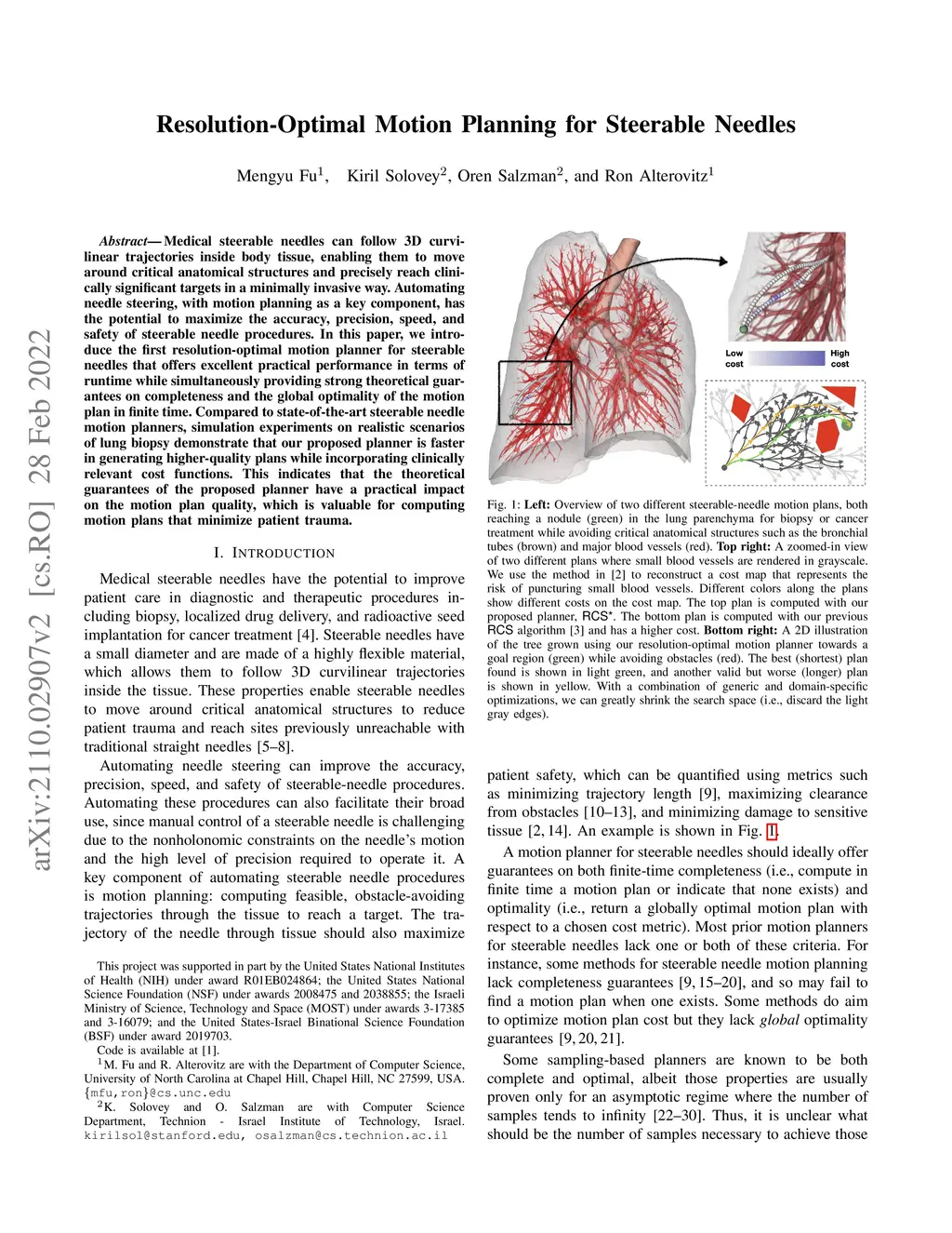 Medical steerable needles can follow 3D curvilinear trajectories inside body tissue, enabling them to move around critical anatomical structures and precisely reach clinically significant targets in a minimally invasive way. Automating needle steering, with motion planning as a key component, has the potential to maximize the accuracy, precision, speed, and safety of steerable needle procedures. In this paper, we introduce the first resolution-optimal motion planner for steerable needles that offers excellent practical performance in terms of runtime while simultaneously providing strong theoretical guarantees on completeness and the global optimality of the motion plan in finite time. Compared to state-of-the-art steerable needle motion planners, simulation experiments on realistic scenarios of lung biopsy demonstrate that our proposed planner is faster in generating higher-quality plans while incorporating clinically relevant cost functions. This indicates that the theoretical guarantees of the proposed planner have a practical impact on the motion plan quality, which is valuable for computing motion plans that minimize patient trauma.