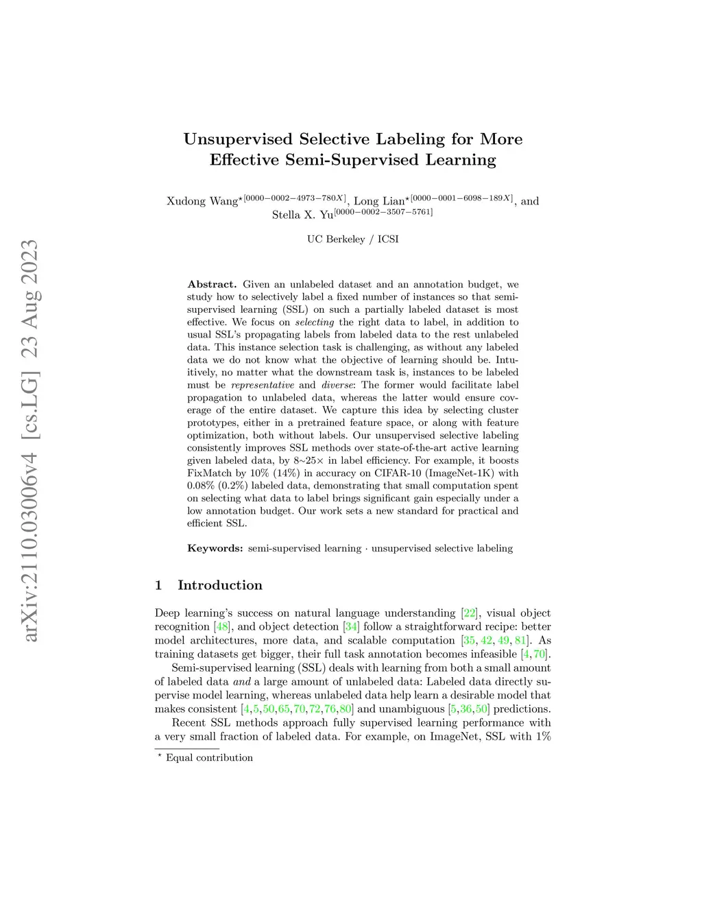 Unsupervised Selective Labeling for More Effective Semi-Supervised