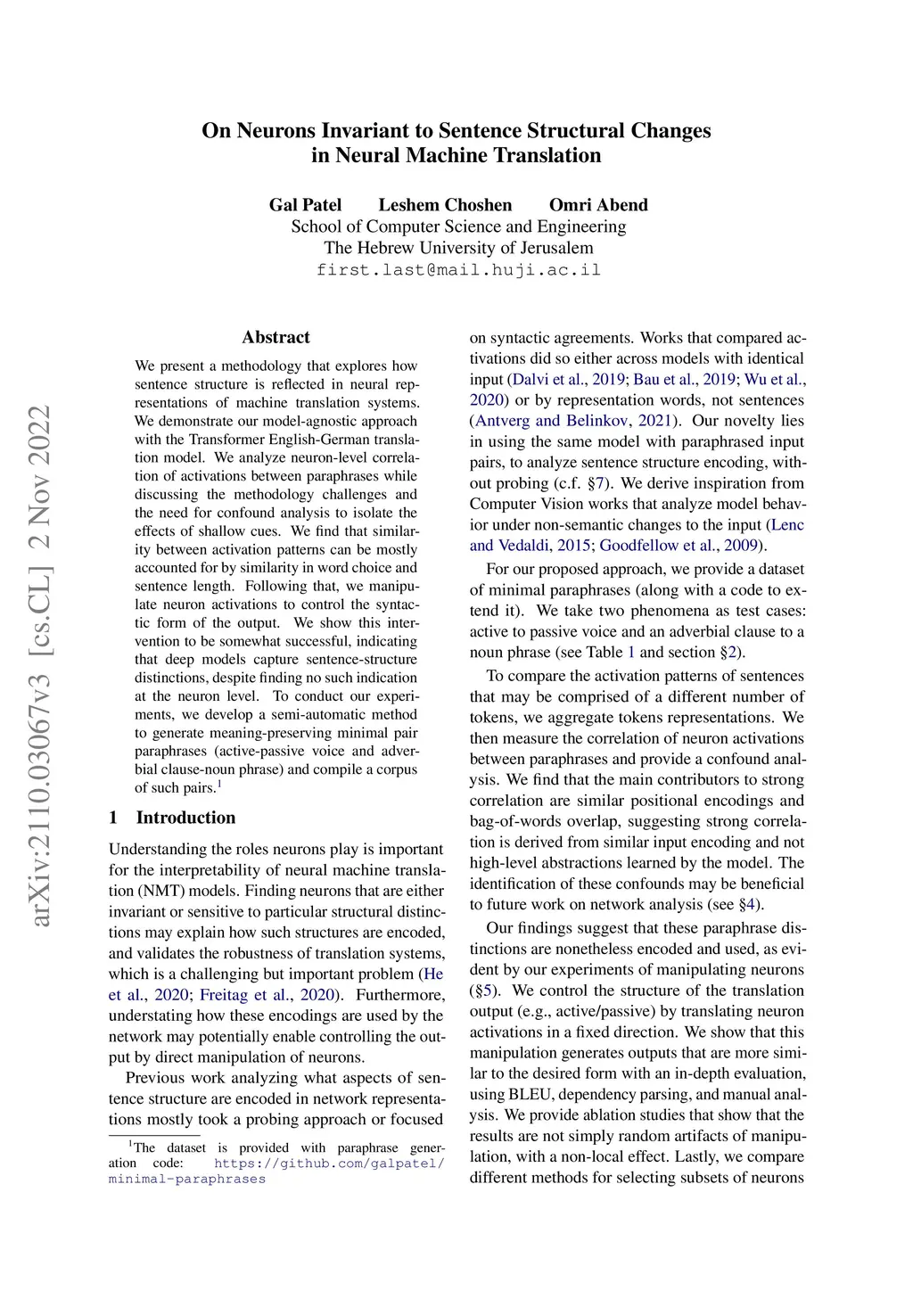 On Neurons Invariant to Sentence Structural Changes in Neural Machine