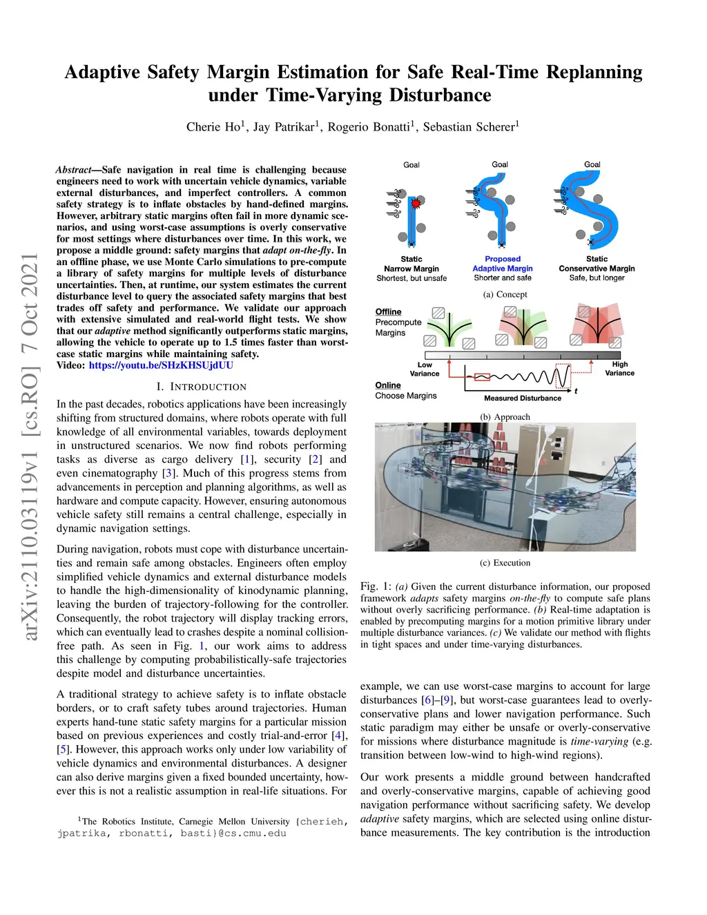 Safe navigation in real-time is challenging because engineers need to work with uncertain vehicle dynamics, variable external disturbances, and imperfect controllers. A common safety strategy is to inflate obstacles by hand-defined margins. However, arbitrary static margins often fail in more dynamic scenarios, and using worst-case assumptions is overly conservative for most settings where disturbances over time. In this work, we propose a middle ground: safety margins that adapt on-the-fly. In an offline phase, we use Monte Carlo simulations to pre-compute a library of safety margins for multiple levels of disturbance uncertainties. Then, at runtime, our system estimates the current disturbance level to query the associated safety margins that best trades off safety and performance. We validate our approach with extensive simulated and real-world flight tests. We show that our adaptive method significantly outperforms static margins, allowing the vehicle to operate up to 1.5 times faster than worst-case static margins while maintaining safety. Video: https://youtu.be/SHzKHSUjdUU