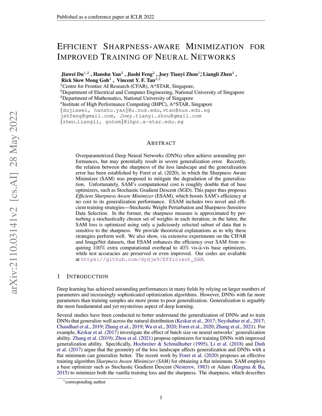 Efficient Sharpness-aware Minimization for Improved Training of Neural