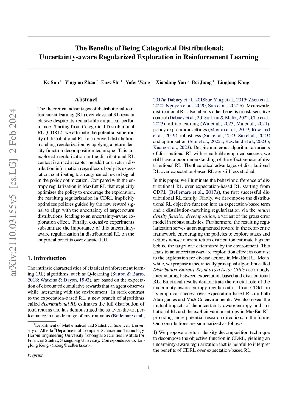 The theoretical advantages of distributional reinforcement learning~(RL) over classical RL remain elusive despite its remarkable empirical performance. Starting from Categorical Distributional RL~(CDRL), we attribute the potential superiority of distributional RL to a derived distribution-matching regularization by applying a return density function decomposition technique. This unexplored regularization in the distributional RL context is aimed at capturing additional return distribution information regardless of only its expectation, contributing to an augmented reward signal in the policy optimization. Compared with the entropy regularization in MaxEnt RL that explicitly optimizes the policy to encourage the exploration, the resulting regularization in CDRL implicitly optimizes policies guided by the new reward signal to align with the uncertainty of target return distributions, leading to an uncertainty-aware exploration effect. Finally, extensive experiments substantiate the importance of this uncertainty-aware regularization in distributional RL on the empirical benefits over classical RL.