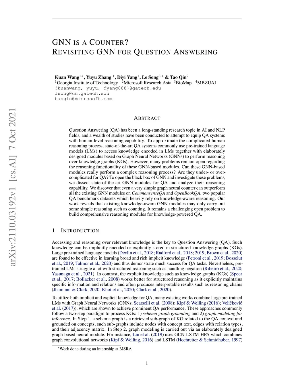 GNN is a Counter? Revisiting GNN for Question Answering