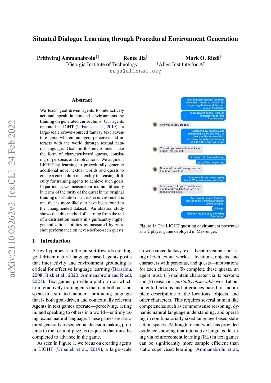 Situated Dialogue Learning through Procedural Environment Generation