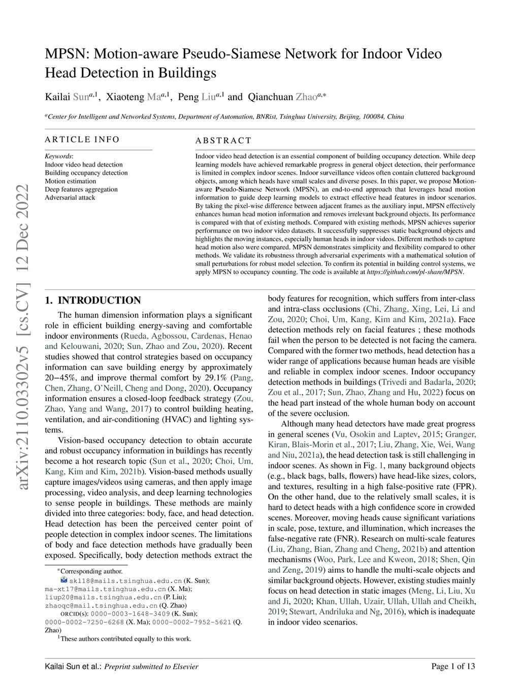 MPSN: Motion-aware Pseudo Siamese Network for Indoor Video Head