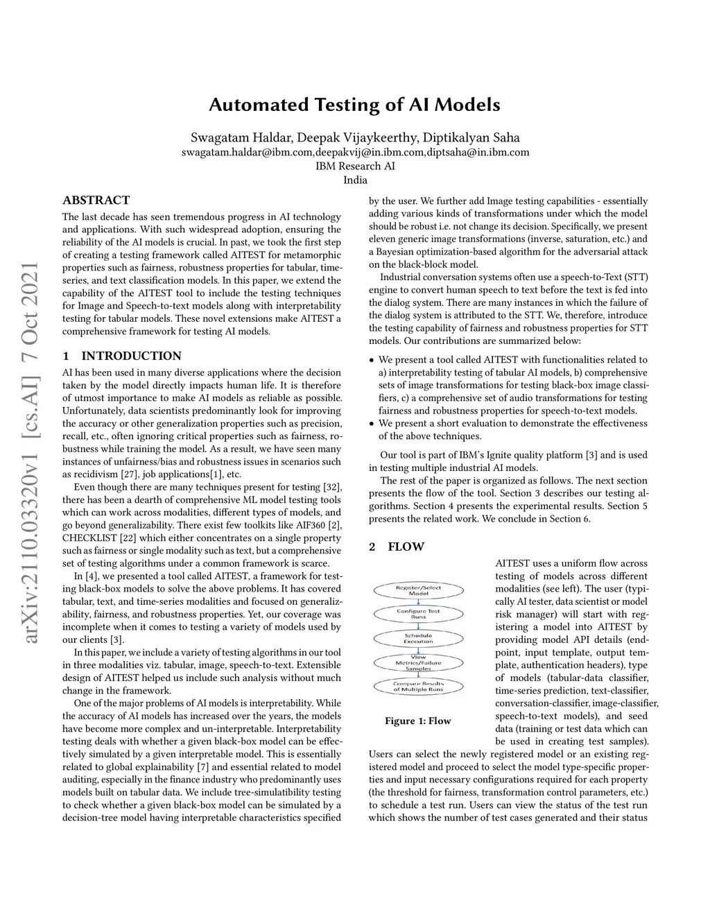 The last decade has seen tremendous progress in AI technology and applications. With such widespread adoption, ensuring the reliability of the AI models is crucial. In past, we took the first step of creating a testing framework called AITEST for metamorphic properties such as fairness, robustness properties for tabular, time-series, and text classification models. In this paper, we extend the capability of the AITEST tool to include the testing techniques for Image and Speech-to-text models along with interpretability testing for tabular models. These novel extensions make AITEST a comprehensive framework for testing AI models.