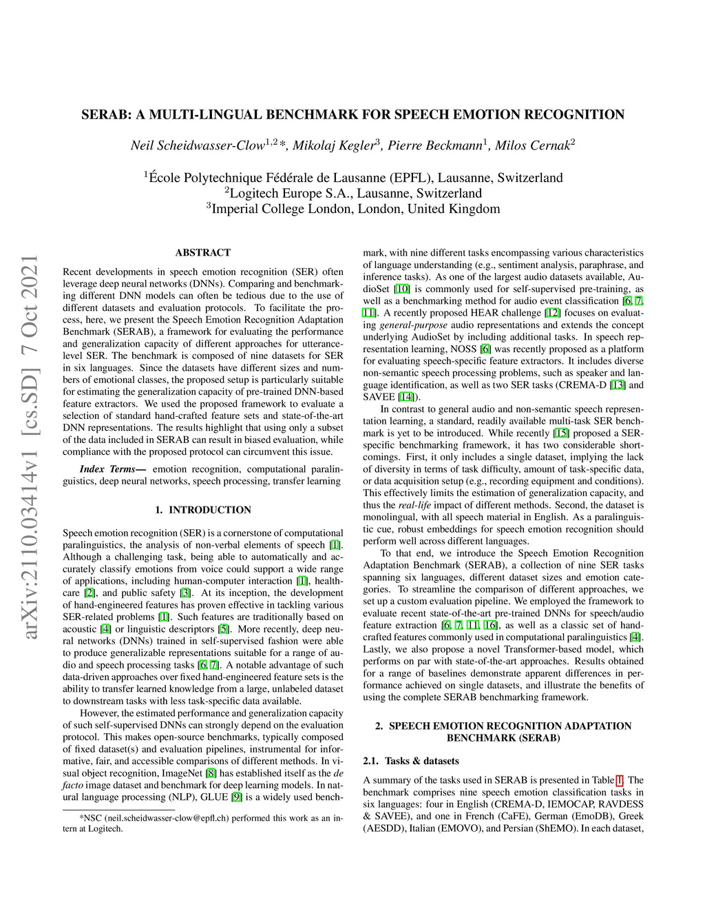 SERAB: A multi-lingual benchmark for speech emotion recognition