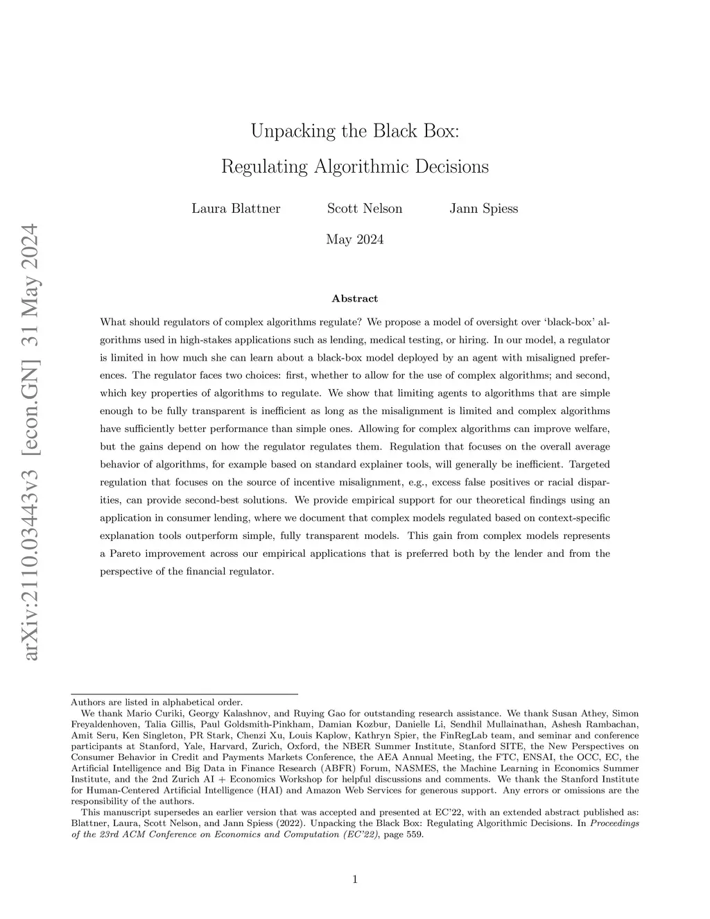 Unpacking the Black Box: Regulating Algorithmic Decisions