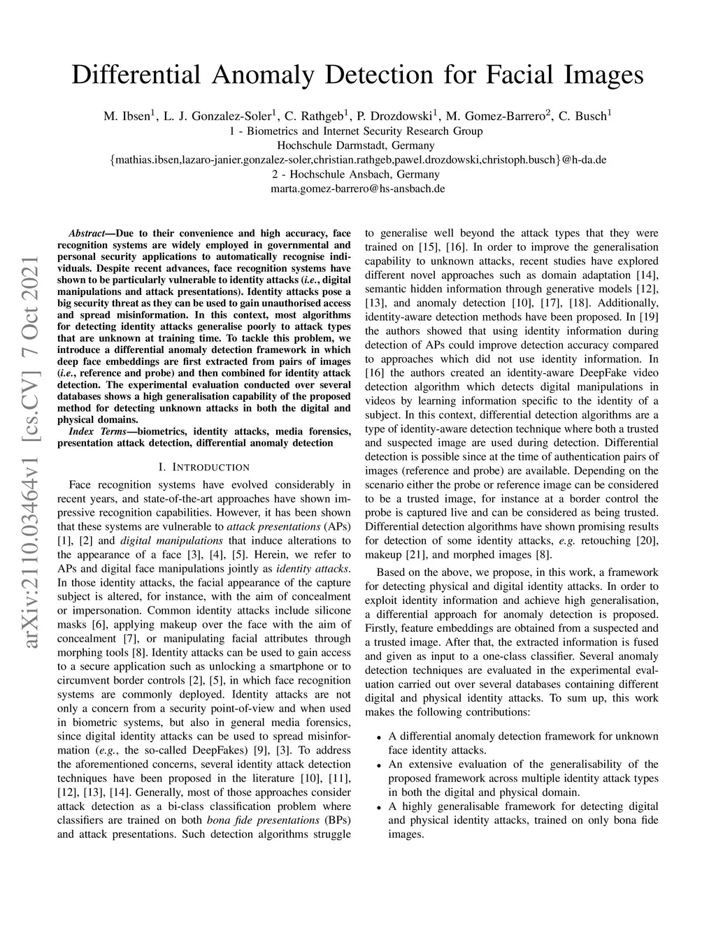 Due to their convenience and high accuracy, face recognition systems are widely employed in governmental and personal security applications to automatically recognise individuals. Despite recent advances, face recognition systems have shown to be particularly vulnerable to identity attacks (i.e., digital manipulations and attack presentations). Identity attacks pose a big security threat as they can be used to gain unauthorised access and spread misinformation. In this context, most algorithms for detecting identity attacks generalise poorly to attack types that are unknown at training time. To tackle this problem, we introduce a differential anomaly detection framework in which deep face embeddings are first extracted from pairs of images (i.e., reference and probe) and then combined for identity attack detection. The experimental evaluation conducted over several databases shows a high generalisation capability of the proposed method for detecting unknown attacks in both the digital and physical domains.