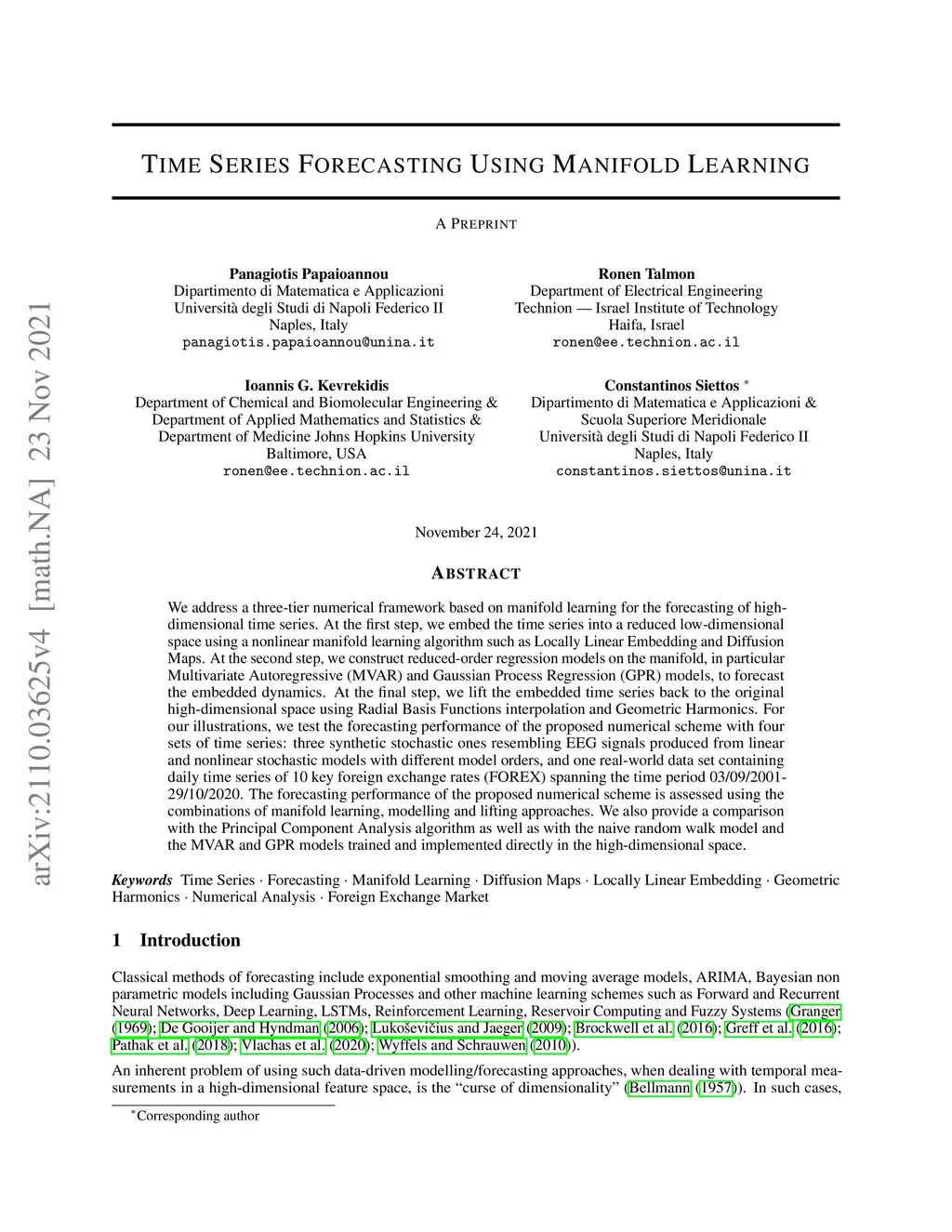 Time Series Forecasting Using Manifold Learning