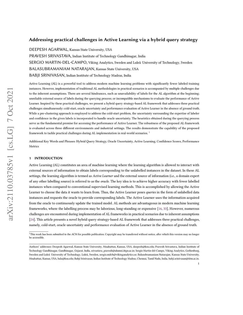 Addressing practical challenges in Active Learning via a hybrid query