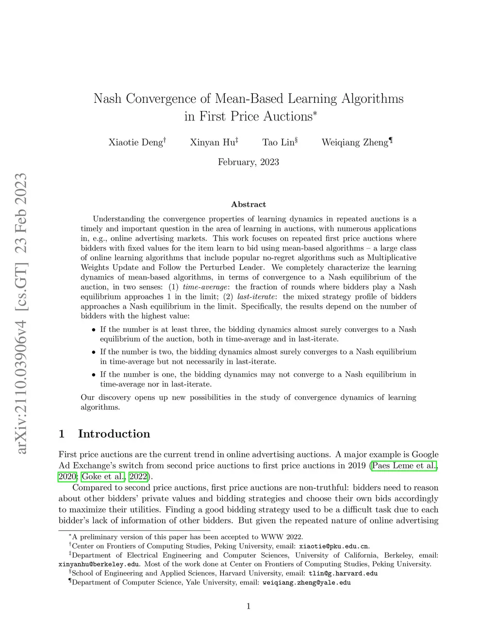 The convergence properties of learning dynamics in repeated auctions is a timely and important question, with numerous applications in, e.g., online advertising markets. This work focuses on repeated first-price auctions where bidders with fixed values learn to bid using mean-based algorithms -- a large class of online learning algorithms that include popular no-regret algorithms such as Multiplicative Weights Update and Follow the Perturbed Leader. We completely characterize the learning dynamics of mean-based algorithms, under two notions of convergence: (1) time-average: the fraction of rounds where bidders play a Nash equilibrium converges to 1; (2) last-iterate: the mixed strategy profile of bidders converges to a Nash equilibrium. Specifically, the results depend on the number of bidders with the highest value:- If the number is at least three, the dynamics almost surely converges to a Nash equilibrium of the auction, in both time-average and last-iterate.- If the number is two, the dynamics almost surely converges to a Nash equilibrium in time-average but not necessarily last-iterate.- If the number is one, the dynamics may not converge to a Nash equilibrium in time-average or last-iterate.Our discovery opens up new possibilities in the study of the convergence of learning dynamics.