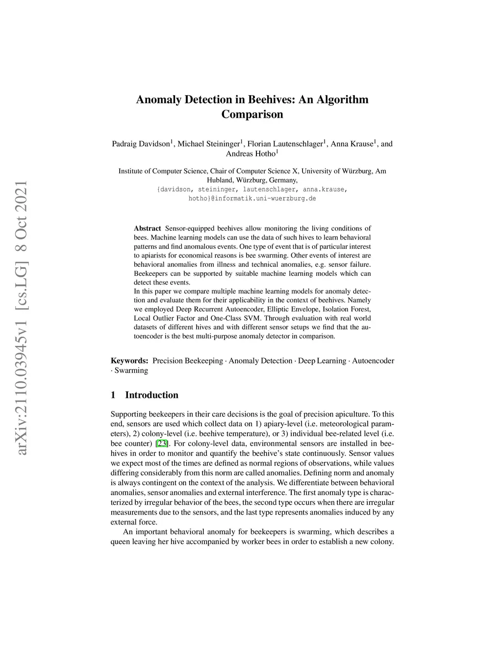 Anomaly Detection in Beehives: An Algorithm Comparison