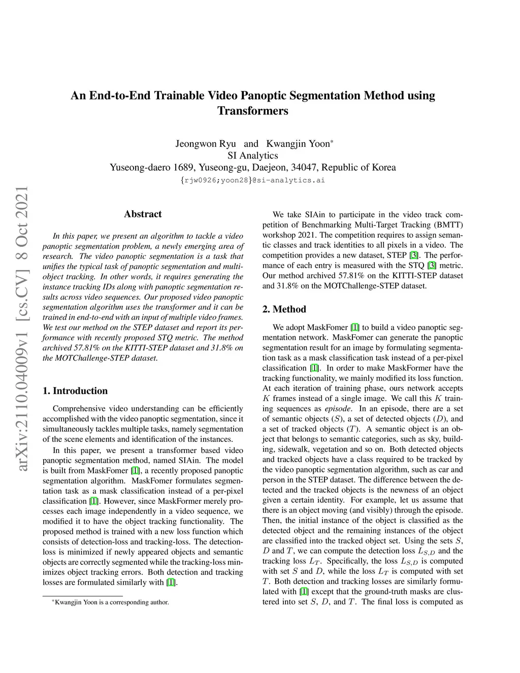 In this paper, we present an algorithm to tackle a video panoptic segmentation problem, a newly emerging area of research. The video panoptic segmentation is a task that unifies the typical task of panoptic segmentation and multi-object tracking. In other words, it requires generating the instance tracking IDs along with panoptic segmentation results across video sequences. Our proposed video panoptic segmentation algorithm uses the transformer and it can be trained in end-to-end with an input of multiple video frames. We test our method on the STEP dataset and report its performance with recently proposed STQ metric. The method archived 57.81\% on the KITTI-STEP dataset and 31.8\% on the MOTChallenge-STEP dataset.
