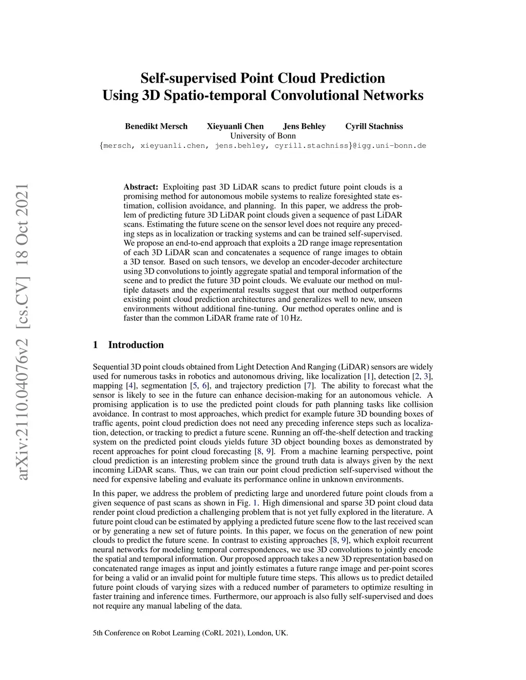 Self-supervised Point Cloud Prediction Using 3D Spatio-temporal