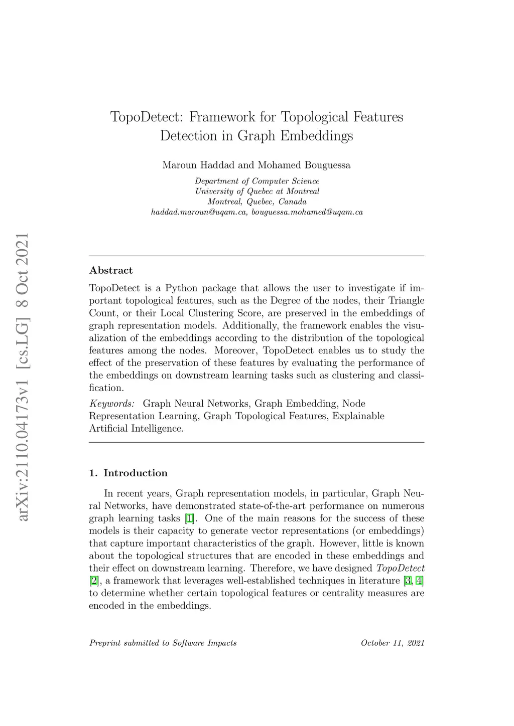 TopoDetect: Framework for Topological Features Detection in Graph