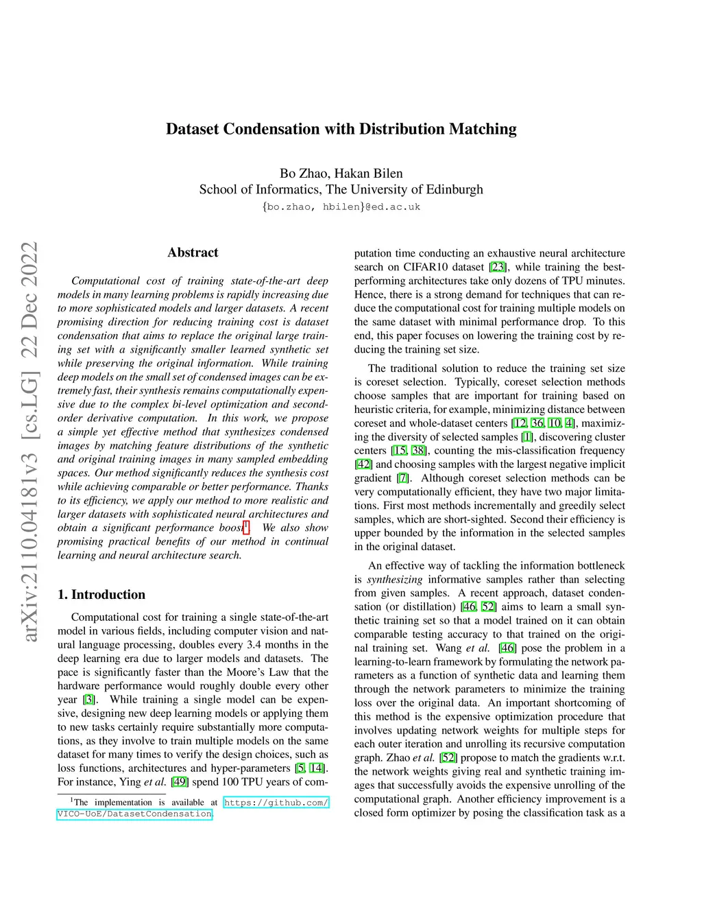 Dataset Condensation with Distribution Matching