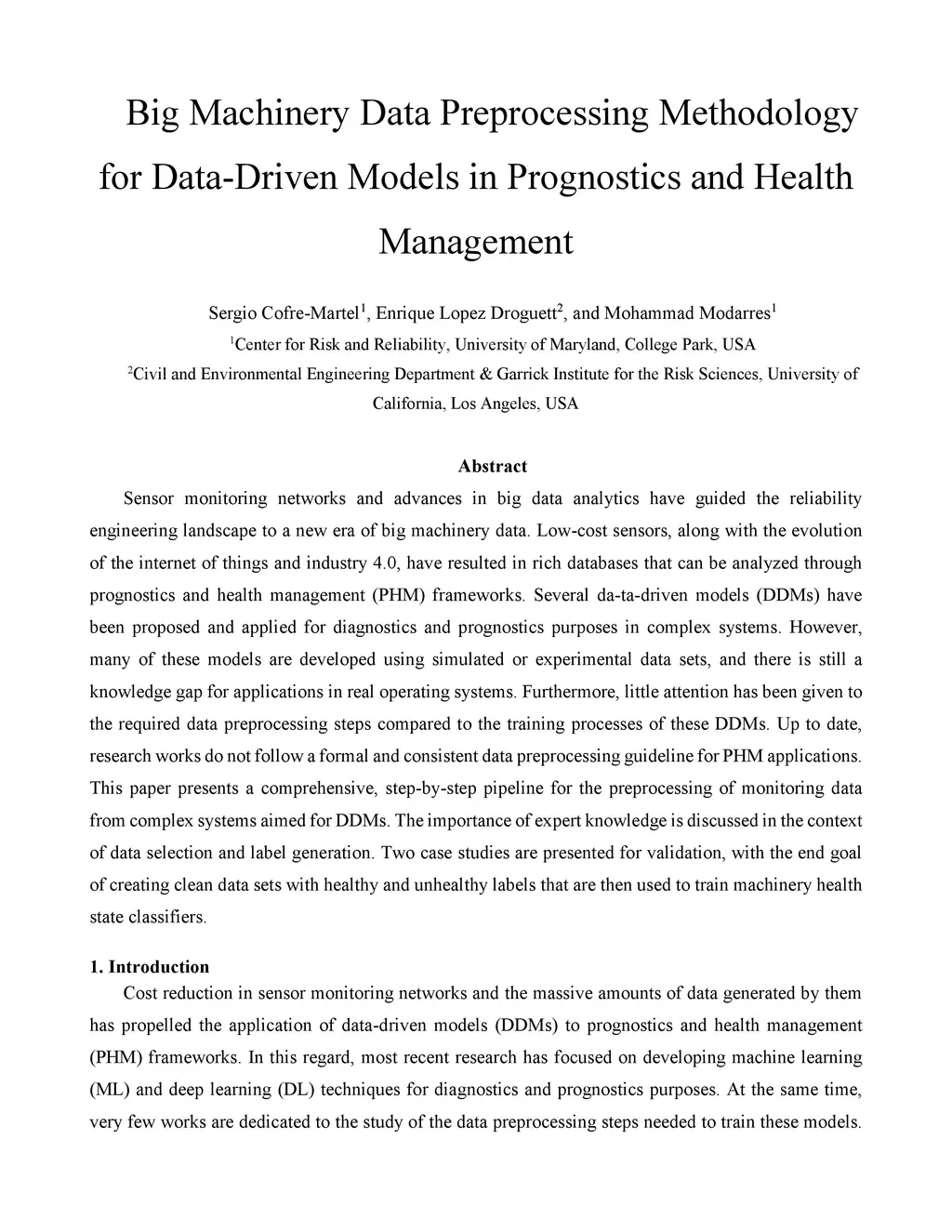 Big Machinery Data Preprocessing Methodology for Data-Driven Models in
