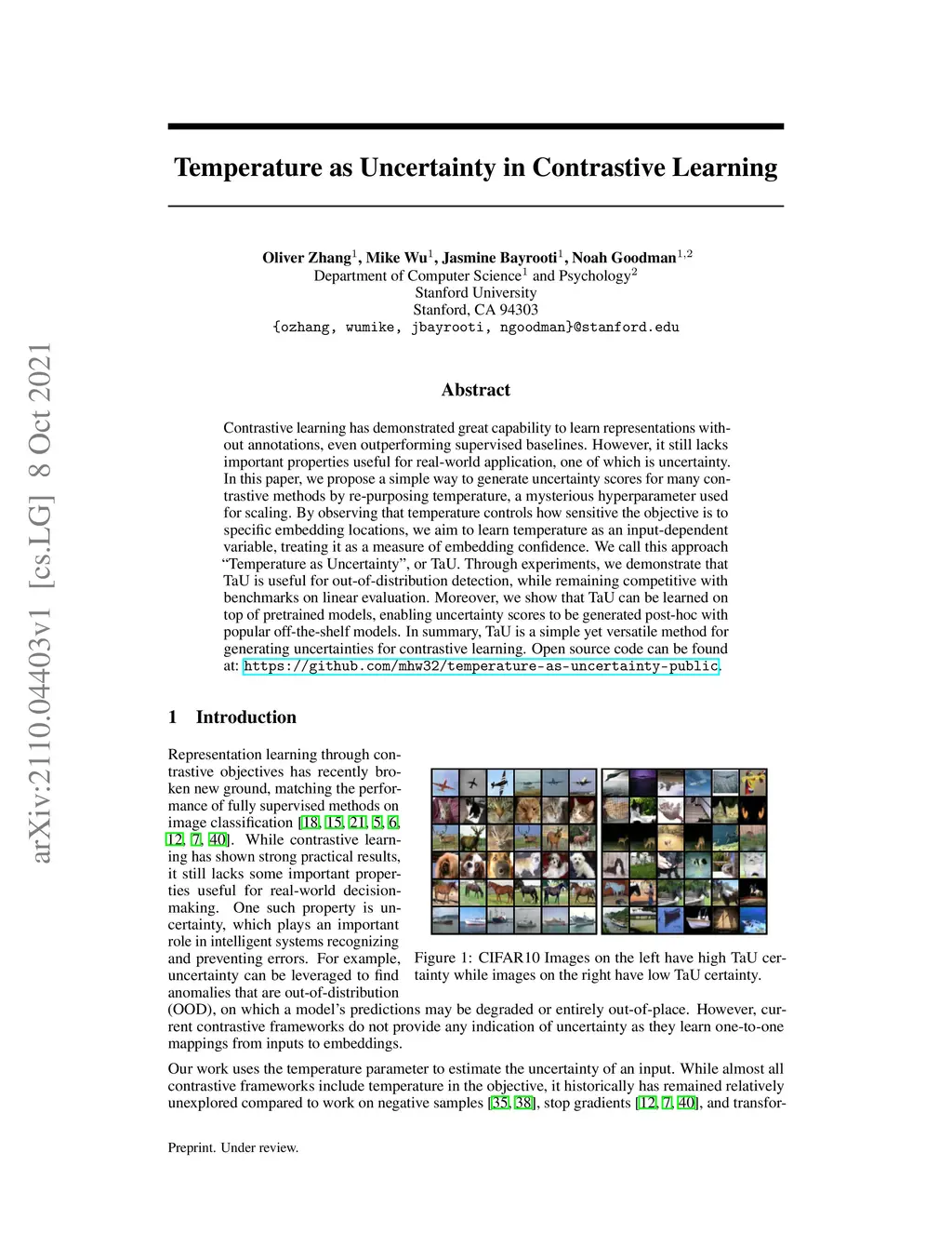 Temperature as Uncertainty in Contrastive Learning