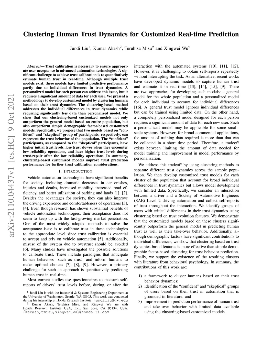 Clustering Human Trust Dynamics for Customized Real-time Prediction