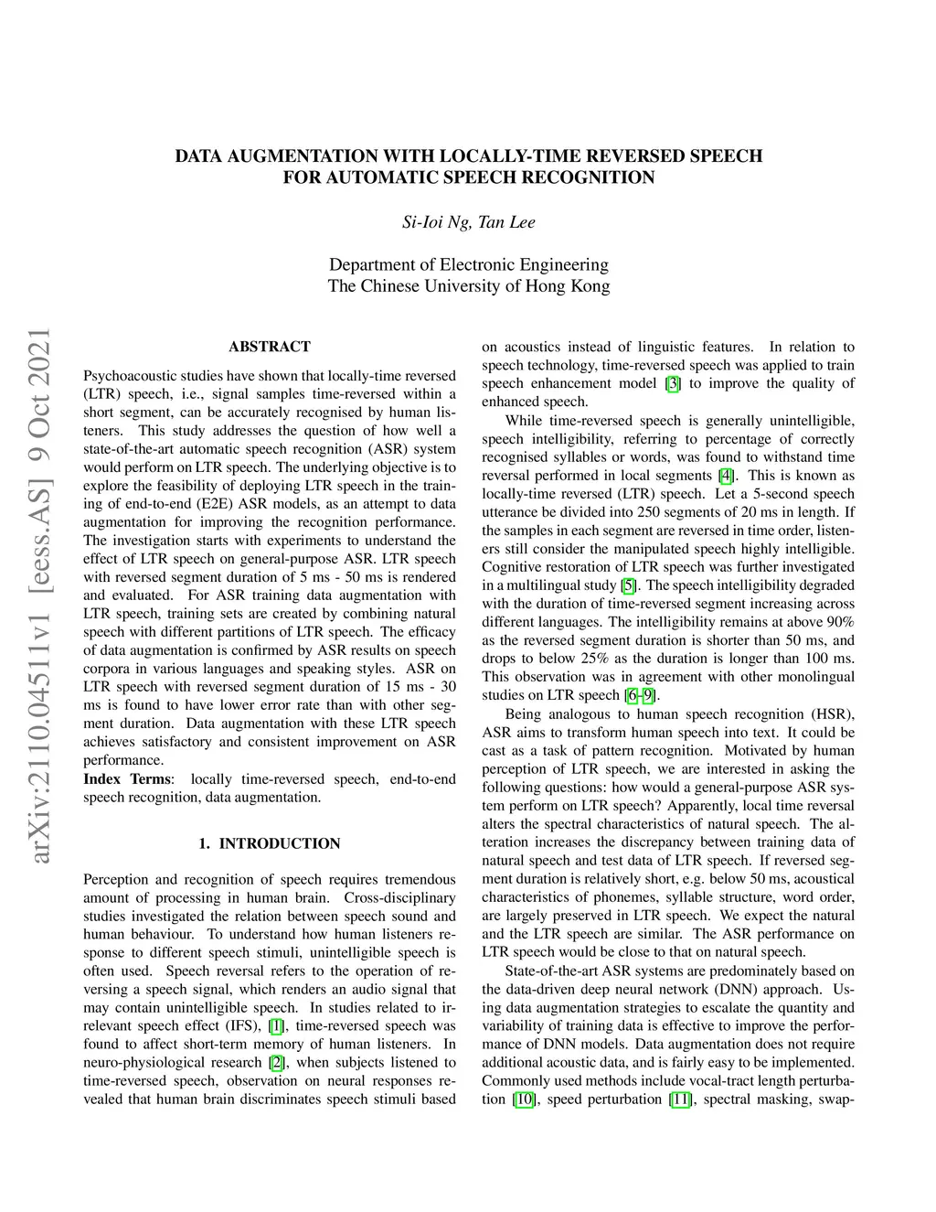Data Augmentation with Locally-time Reversed Speech for Automatic Speech