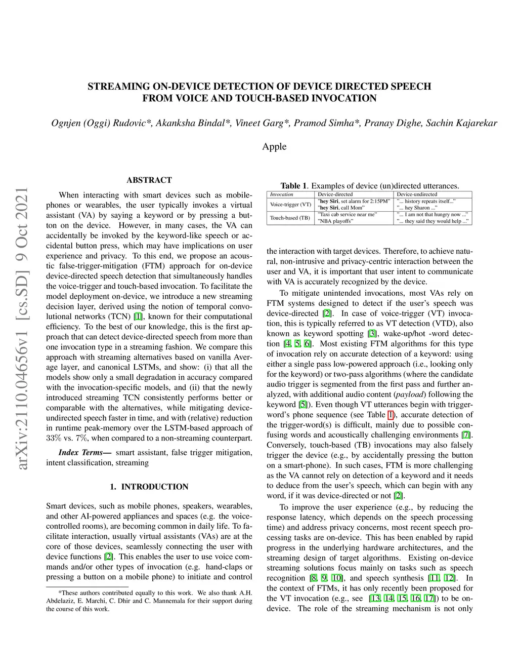 When interacting with smart devices such as mobile phones or wearables, the user typically invokes a virtual assistant (VA) by saying a keyword or by pressing a button on the device. However, in many cases, the VA can accidentally be invoked by the keyword-like speech or accidental button press, which may have implications on user experience and privacy. To this end, we propose an acoustic false-trigger-mitigation (FTM) approach for on-device device-directed speech detection that simultaneously handles the voice-trigger and touch-based invocation. To facilitate the model deployment on-device, we introduce a new streaming decision layer, derived using the notion of temporal convolutional networks (TCN) [1], known for their computational efficiency. To the best of our knowledge, this is the first approach that can detect device-directed speech from more than one invocation type in a streaming fashion. We compare this approach with streaming alternatives based on vanilla Average layer, and canonical LSTMs, and show: (i) that all the models show only a small degradation in accuracy compared with the invocation-specific models, and (ii) that the newly introduced streaming TCN consistently performs better or comparable with the alternatives, while mitigating device undirected speech faster in time, and with (relative) reduction in runtime peak-memory over the LSTM-based approach of 33% vs. 7%, when compared to a non-streaming counterpart.