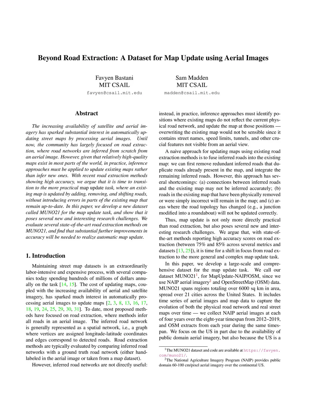 The increasing availability of satellite and aerial imagery has sparked substantial interest in automatically updating street maps by processing aerial images. Until now, the community has largely focused on road extraction, where road networks are inferred from scratch from an aerial image. However, given that relatively high-quality maps exist in most parts of the world, in practice, inference approaches must be applied to update existing maps rather than infer new ones. With recent road extraction methods showing high accuracy, we argue that it is time to transition to the more practical map update task, where an existing map is updated by adding, removing, and shifting roads, without introducing errors in parts of the existing map that remain up-to-date. In this paper, we develop a new dataset called MUNO21 for the map update task, and show that it poses several new and interesting research challenges. We evaluate several state-of-the-art road extraction methods on MUNO21, and find that substantial further improvements in accuracy will be needed to realize automatic map update.