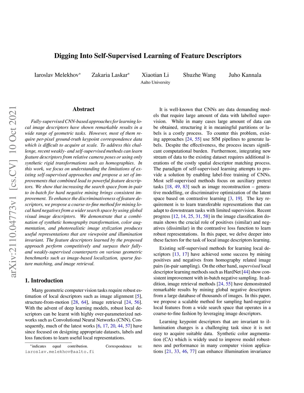 Digging Into Self-Supervised Learning of Feature Descriptors